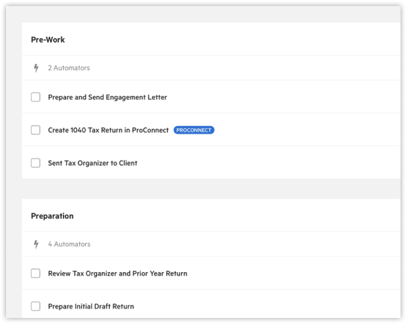 Manage CPAs by seeing what needs to be done, for which client, by when. Simply drag and drop to reprioritize, reassign, and balance out work. Filter your view by due date, status, assignee, and more so all tax preparers on the team stay in-the-know and the work never misses a beat.